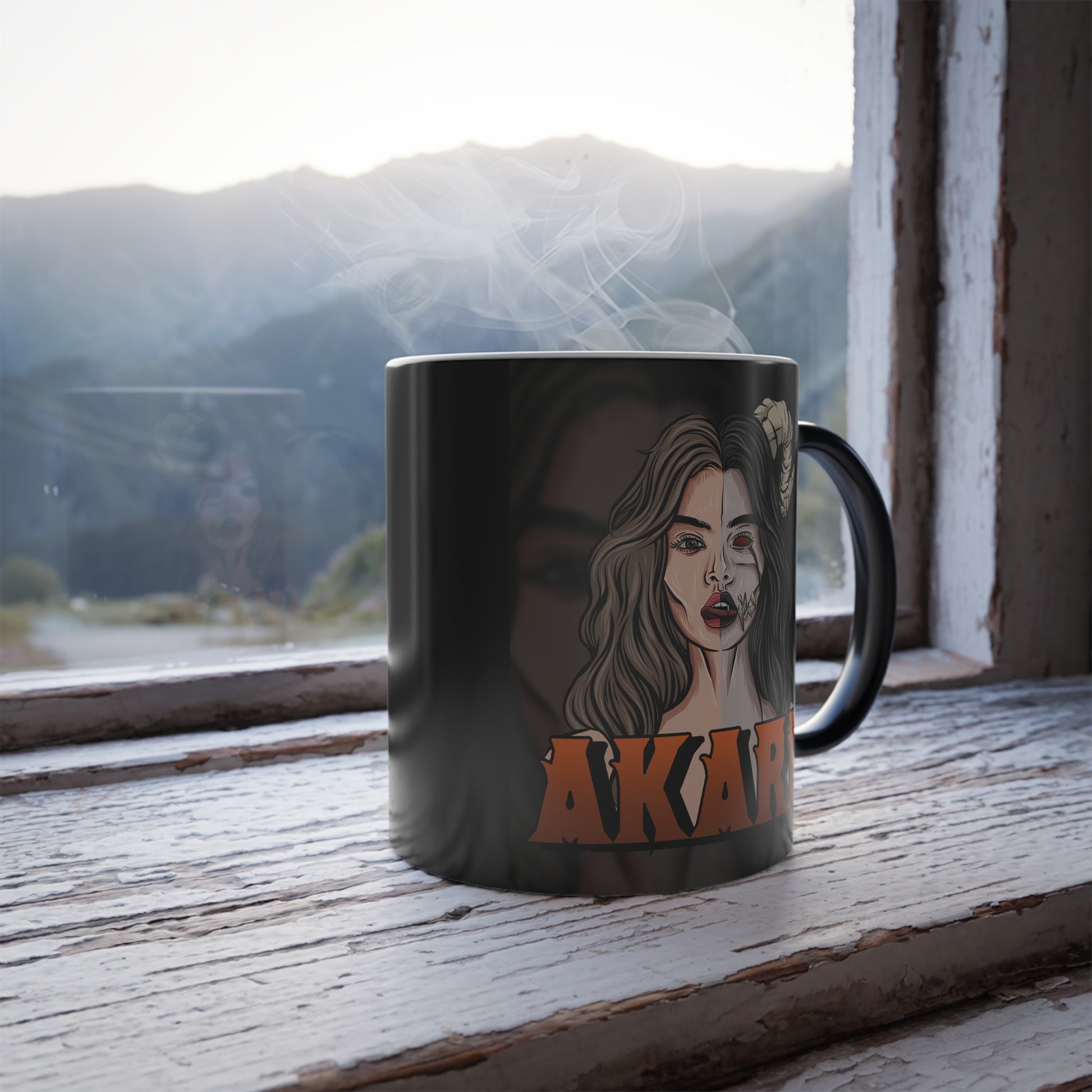 This Color Morphing Mug from the Akari Brand Face-Off Exclusive Collection features a Streamline StreetWear Fantasy Art Graphic Design. Perfect for those who love unique and artistic mugs, this heat-sensitive mug reveals a vibrant design when filled with a hot drink. Great for fantasy art enthusiasts and those who enjoy a touch of magic in their daily routine. Ideal for gifting on birthdays, holidays, and special occasions.